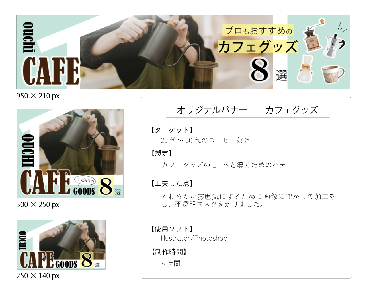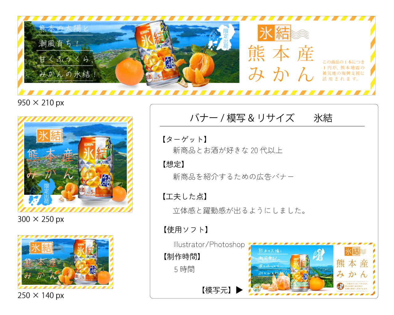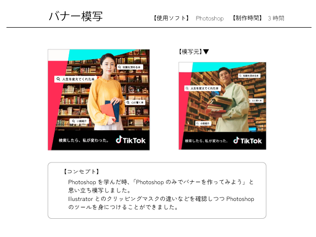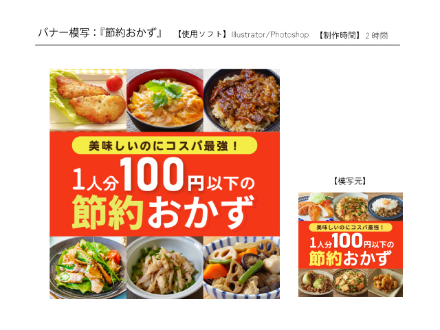 Photoshop使い立ての頃初めて模写をしたバナーです。小さいバナーにコンセプトをギュッと込めるとはこういう事かと感じることができました。